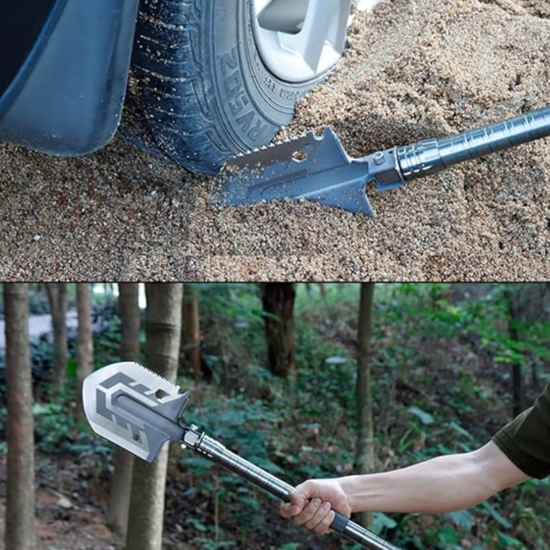 Con esta herramienta podrá cavar agujeros con facilidad, cortar ramas y arbustos sin dificultad e incluso romper cristales en situaciones de emergencia.